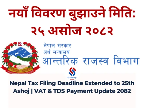 The Government of Nepal has extended the tax filing and payment deadline to 25th Ashoj 2082. Submit your VAT, TDS, Education Service Fee, and Luxury Fee without penalties or late fees under the “circumstances beyond control” provision.